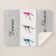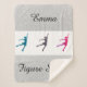 Girl's Figure Skater Sherpa Blanket Personalized w/ Her Name. Silver faux glitter sparkle with 3 different colored figure skaters in the center. Just add the name of your figure skater!