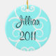 Lightweight, smooth, pure white ornament with nice sheen. Perfect size to be seen from across the room ... and to attract closer inspection! Price was great for ordering enough for the whole family! Clear, bold black design just as requested. Matches the order exactly. Just so nice!