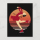 Artistic illustration of an ice dancing ballerina doing figure skating in front of a retro sunset.