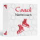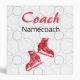 Front Design: Coach in red + Personalize with the name of the coach + Pair of figure skates in red stars