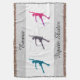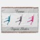 Girl's Figure Skater Throw Blanket Personalized w/ Her Name. Silver faux glitter sparkle with 3 different colored figure skaters in the center.