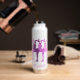 Colorful female synchronized figure skaters adorn this water bottle. This skating themed water bottle with colorful female figure skaters is perfect for those that love skating. Can be personalized with her name -celebrate her!