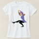 A lovely design of a figure skater performing one of her moves. This figure skater looks so graceful with her arms up and crouching down on one leg preparing to spin. This figure skating design looks great on this womens t-shirt. Perfect for yourself or as a gift