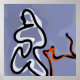 Abstract Print of Seated Figure and Cat with Complementary and Monochromatic Blue Color Schemes including Black and White
