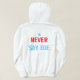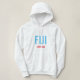 A white sweatshirt with red/blue "FIJI. LET'S GO" in the front. The back says "& NEVER SAY DIE". Wear it with pride wherever in the world Fiji plays!