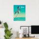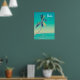 Travel print theme with blue sky and Coconut palm trees from a photograph taken in Fiji. Tropical Island getaway theme. Summer holiday vibe. Retro vintage colors for a vintage tropical holiday theme with Bula local language greeting.