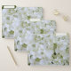 The hydrangea is a glorious, flowering shrub. The flowers can be pink, purple, blue, cream and, depending on the soil, magical combinations of these colors. In some varieties of hydrangea, the pH of the soil will determine the color. Blue requires acidic soil, with a pH of about 5.0 to 5.5. Pink or purple requires an alkaline soil, with a pH of 6.5 to 7.0. Neutral soil will generally result in cream-colored petals, but you can also get what some call "blurple" (blue and purple). Like clusters of tiny butterflies, the small florets gather into stunning spheres. The hydrangea is said to represent grace, friendship, lavish beauty and the preservation of love that lasts forever. This latter sentiment is likely why white hydrangeas are so popular for bridal bouquets. The lovely snowy white blooms cover the outside of these stunning file folders, while the interiors are shades of green pulled directly from the photo image itself, bringing graceful elegance to your organizing.