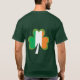 A beer mug pours shamrocks into the green portion of Ireland's flag. On the back is a shamrock colored with Ireland's flag.