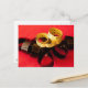 Against a red background, yellow admit one tickets sit atop an unspooled film reel. This postcard is fully customizable.