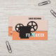 Film maker/director/Movie maker business cards business cards, featuring a black vitage 35 mm movie style camera and the word “FILMAKER” with the M in light blue in the middle, on white and coral peach background.
