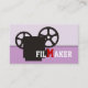 Film maker/director/Movie maker business cards business cards, featuring a black vitage 35 mm movie style camera and the word “FILMAKER” with the M in red in the middle, on lilac purple background.