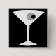 This Film Noir Martini Glass Button features a black background and the image of a white silhouette of a martini glass. Inside the glass is a glorious gray olive with a black pimento. This is a fun button for everyone who wishes they were a character in a classic movie. Shaken not stirred, please!