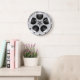 An Urban style Wall Clock with black and white numerals, and a digital illustration of a retro Movie Reel. Available in other options. Visit our store for more Cinema themed Gifts and other Home Accessories.