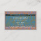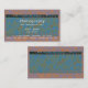 The original graphic design on this Business Card was created from a scan of a strip of 35 mm film. The background colors are muted sky blues and rusts. The film strip colors are muted aqua blues and golden browns. The top of the film strip, where it folds over, is black with aqua blue highlights. The text is white, to customize with your own title and information, and there is room on the back for more.