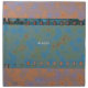 The modern, original artwork by ZoeSPEAK on this Cloth Napkin was created from a scan of a strip of 35mm film. The background colors are muted sky blues and rusts. The film strip colors are muted aqua blues and golden browns. The top of the film strip, where it folds over, is black with aqua blue highlights. The line of white text, which reads "studio", is set to personalize, use as is, or delete. The napkins come in two sizes, dinner (shown) and cocktail.