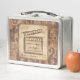 This is a standard metal lunchbox that appears to work just fine. We designed this box ourselves with an uploaded photo and custom text on the front and back. It looks absolutely beautiful except the front of the lunchbox is not centered like it shows in the photo. The print borders don't align with the inset flat part of the box where the preview photo online showed it perfectly centered in there. The back looks nice and centered though.