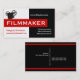 Filmmaker black, white, red eye-catching business card featuring a vitage 35 mm movie style camera in black on white, black background and a red band with the text "FILMMAKER". A great professional business card template for the film maker, director, movie maker, film producer, cinematographer, videographer, video producer, camera operator or cameraman.