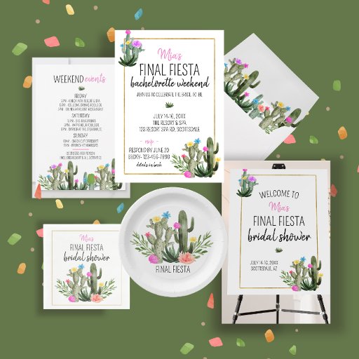 Invite your tribe to your bestie's bachelorette party weekend with this Final Fiesta-themed invitation. The watercolor design has a soft feminine feel perfect for any bride-to-be. Coordinate this invite with other must-have products in the Final Fiesta Collection at PetalsandStemsEvents.