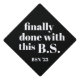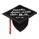 Punny grad cap topper features the quote "Finally done with this B.S" (we mean Bachelor of Science! *wink wink*) in white lettering on a black background. Personalize with your class year and/or school.