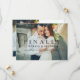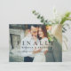 A bold and modern single-photo save the date featuring the playful headline "Finally!" overlaid directly on a full-bleed engagement photo with elegant script details below. The coordinating back panel presents a portrait photo alongside the wedding date, location, and website in a clean split layout. Perfect for couples who want their save the date to make a statement with both personality and style. All text and photos are fully customizable.