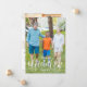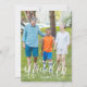 Double sided photo adoption announcement with finally officially ours written across a photo in a white font. Add the information about the adoption to the back beneath a second photo of your and your child.