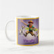 This scene depicts a man in his mid 60s and his two dogs jumping up happily for his retirement. He waited so long for this to happen. It is time to celebrate for a new stage in life. Customizable coffee mug to congratulate your best friend.