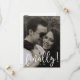 A fun and modern save the date card if you're a couple who have been taking your sweet time to get engaged or set a wedding date! This design features a full bleed version of your favorite photo of the two of you, overlain with the word "finally!" in white script hand-lettered style font, and your wedding date in modern font. The reverse side has the phrase "we're getting married!" in black script hand lettered font and provides details of your big day, which you can fully personalize and customize.