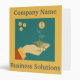 This stylish and modern design for a business plan or finance business presentation features a global theme of an outstretched hand holding coins against a modern mustard yellow background. The text on this design is classic and bold and reflects a corporate mentality. The text is fully customisable to include your own company name and title.