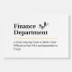 Add a professional touch to your office or workspace with this bold Finance Department foam board sign. Perfect for office decor, department signage, team events, or corporate gatherings, this design helps showcase your finance team's pride and identity. Ideal for finance professionals, accountants, financial analysts, and anyone working in the financial department. A great addition for internal events, team photos, or simply enhancing your office atmosphere.