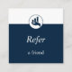 Financial planner refer a friend square business card is a branded promotional card useful to any entrepreneur to gain referrals. Replace the logo, define the condition, and the rewards once fulfilled. Customize the name and contact details. Then adjust what the referrer and referral will receive and label the custom fields. Further customization of font, font size, font color, and color of background and shapes are possible. Should you require assistance or want to discuss a custom design, contact https://t.me/KBMD3signs_chat.