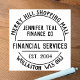 Financial Services Rubber Stamp. Company Name, Business type, plus Two Lines of Address in a circular effect. A business rubber stamp for all kinds of stationery items, envelopes, packages etc. Stamp your return address easily and stylishly.