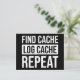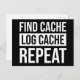 Find Cache, Log Cache, Repeat. This funny geocaching accessory is great for geocacher men, women, girls, boys, teens & kids who love to go hiking in the outdoors and go hunting for a hidden geocache. If your hobby is to hike in the woods & forest and use a gps & map to help you find hidden treasure, or you like to create and hide geocaches yourself, then this design is for you!