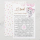 Find The Guest Bingo, Girl's Elephant & Flower Watercolor Baby Shower Game.