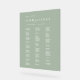 Guide your guests to their seats with this elegant and practical pale green wedding acrylic seating chart sign in alphabetical order—simple, stylish, and clean style with modern typography. Stress-free and friendly for your guests! Pale green acrylic background with white text. If you like to change the background color to another color you can do so by selecting "Customize further" this design, then select "Background" on the vertical menu to the left and select the color you like. Use our 3 columns to add your guest names, and if needed, you can always select "Edit using Design Tool" with the button located at the end of the template text boxes, and increase the font size or reduce it to fit your guest names correctly, as well as select the column and move their position to accommodate your amount of guest correctly. We recommend creating a display with 2 or more signs for events with a great number of guests. 12" x 18" is simply our default size, you can choose from several size options. Sign in a high-quality white acrylic sheet with the text printed in black. Small sizes come with a wood block to stand, bigger sizes need an easel or surface to stand so they won't warp. Part of our "Moder Elegant Typography Green" collection with coordinating signage available. Visit the entire collection at: https://www.zazzle.com/collections/modern_elegant_typography_green_wedding-119450360134999957 Dimensions of sign from demo photo with stand: 24" x 36"