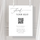 Welcome your guests in style with this elegant QR code sign, designed to link directly to your digital seating chart. Featuring beautiful modern handwritten script calligraphy details, it’s a stylish and practical choice for couples who want a stress-free way to keep seating details up to date—even at the last minute. Simply add your seating plan page URL address, and Zazzle will automatically generate and place your personalized QR code. Be sure to scan the preview to confirm it links correctly before ordering. The 8" x 10" size shown is just an example, as you can choose from a variety of sizes to best suit your display. Printed on premium poster paper, it’s easy to frame or mount onto MDF or foam board. If you’d prefer a ready-to-display foam board, scroll to the “Transfer design to a product” section on this page, browse until you find “Foam Boards". (If it first transfers into a larger size, you can easily resize it on the product page and preview how it will look on a stand.) Please note that while the cart may list the back as “blank,” don't worry about it; the back will actually be white. Part of our "Modern Elegant Wedding & Event Signage" collection, this design can be paired with coordinating pieces for a polished and cohesive look. If you need help, just send me a message—I’ll be glad to assist. Dimensions of sign in demo photo with stand: 18" x 24"