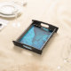 This is a well made, sturdy wooden tray with a flawless black finish and lovely map on the tray surface. It is both vintage & modern at the same time. Looks exactly like the photo; does not disappoint. So nice to find something of quality individually made and not the mass-produced 'shabby chic' merchandise seen in stores. I am so pleased to be able to give this to my college-age niece for her birthday. This can be used as a tray to hold jewelry or toiletries, or hung on the wall as art. The map surface is sealed (it is slightly shiny) so would be moisture resistant. It is well worth the asking price but I was able to apply a sale code as well. Very happy with my purchase. Map is crisp & clear and sealed with a water-resitant finish.