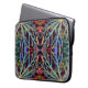 The colorful, original pattern on this 15” Laptop Sleeve was made from an original photograph by ZoeSPEAK of a leaf on a coral plant, sometimes called coral palm. In the closeup photo, other leaves and other plants can be seen behind the main leaf. The colors found are soft tropical pastels, blues, aquas, lavenders, pinks, yellows and greens. The intricate shapes of the leaves stand out against the dark background.