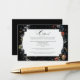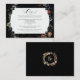 This chic enclosure card design features an 18th century Dutch floral still life, including white, red and gold tulips and wildflowers, on a black background with custom center label, complementary floral graphics and elegant flowing custom calligraphy. The back features an optional floral wreath with monogram template.