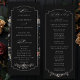 This chic program design features an 18th century Dutch floral still life, including white, red and gold tulips and wildflowers, on a black background with custom center label, complementary floral graphics and elegant flowing custom calligraphy.