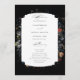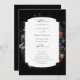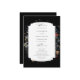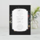 This chic program design features an 18th century Dutch floral still life, including white, red and gold tulips and wildflowers on a black background with custom center label, complementary floral graphics and elegant flowing custom calligraphy.