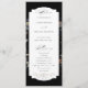 This chic program design features an 18th century Dutch floral still life, including white, red and gold tulips and wildflowers, on a black background with custom center label, complementary floral graphics and elegant flowing custom calligraphy.