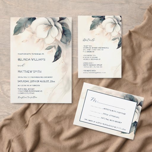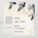 This elegant save the date card features and ivory and blue watercolor 3D flower. Matching casual wedding invitation available.