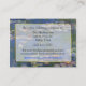Lovely wedding invitation enclosure card, done with Monet's fine art painting of Water Lilies as the background. Graphics of a white transparent and gold tone edged text area, on the front. Black and blue text is ready to customize for your wedding.