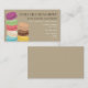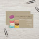 A business card for a bakery or patisserie featuring an illustration of eight french macarons at left. Personalize the text with your information.