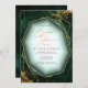 A watercolor background in shades of emerald green is topped by an abstract of fine gold lines and glittering lighting effects to create the pieces of this beautiful wedding suite. The Bridal Shower invitation shown here also features a beautiful gradient frame to hold all your text. Easily add your own names, wedding date and event details using the provided template. Search ID867 to see other pieces and color choices for this set.