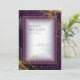 A watercolor background in shades of plum purple is topped by an abstract of fine gold lines and glittering lighting effects to create the pieces of this beautiful wedding suite. The wedding 'Invitation' card shown here also features off-centered text and a beautiful gradient frame to hold all your text. Easily add your own names, wedding date and event details using the provided template. Search ID867 to see other pieces and color choices for this set.