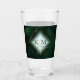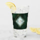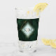 A watercolor background in shades of emerald green is topped by an abstract of fine gold lines and glittering lighting effects to create the pieces of this beautiful wedding suite. The wedding glass tumbler shown here also features a gradient, diamond-shaped frame to hold the bride and groom's initials and wedding date. Search ID867 to see other pieces and color choices for this set.
