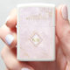A watercolor background in shades from lavender to mauve is topped by an abstract of fine gold lines and glittering lighting effects to create the pieces of this beautiful wedding suite. The wedding gift Zippo lighter shown here also features a gradient, diamond-shaped frame to hold the bride and groom's initials and wedding date with a template to add any party member's name and role. Search ID867 to see other pieces and color choices for this set.