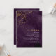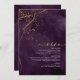 A watercolor background in shades of plum purple is topped by an abstract of fine gold lines and glittering lighting effects to create the pieces of this beautiful wedding suite. The wedding 'Menu' card shown here also features elegant calligraphy and an off-centered layout for visual appeal. Easily add your own initials, wedding date and menu selections using the provided template. Search ID867 to see other pieces and color choices for this set.