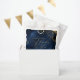 A watercolor background in shades from royal blue to navy is topped by an abstract of fine gold lines and glittering lighting effects to create the pieces of this beautiful wedding suite. The wedding favor bag shown here also features 'Thank You' calligraphy and a personal message along with the bride and groom's names and wedding date. Search ID867 to see other pieces and color choices for this set.